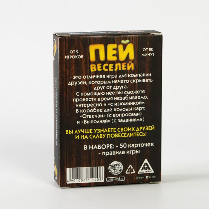 Купить игра для компании "пей веселей" 50 карт от 180 руб. с доставкой до пункта выдачи в Андреаполе. Интернет магазин ДекаМаркет. Оплата при получении.